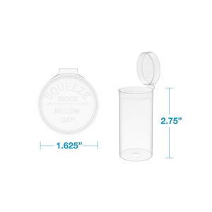 Our 19 dram Pop Top Bottles store 3.5 grams apiece. Each case we sell contains 225 clear bottles. If you’re looking for easy yet secure storage for your products, pop top bottles & containers are an excellent solution for you. Order Clear Pop Top Bottles today!