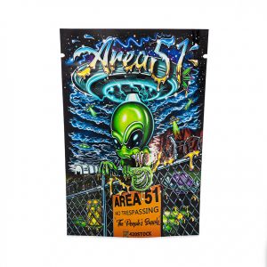 Take your customers to another dimension with our Area 51 mylar bags! Our Area 51 bag features an Area 51 desert backdrop, along with a “little green man” being beamed up into a flying saucer. Our one of a kind bags won’t be found anywhere else and also feature a 420 Stock branded gusset at the bottom of the bag. These bags also have a laser printed rainbow interior and feature a viewing window so that you can show off the goods in style! 420 Stock Trapper Bags are great for dressing up your product and create a fun experience for the end user!