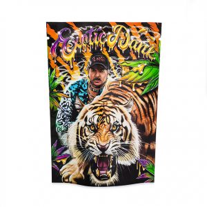 Show off you exotics with our Exotic Dank mylar bags! Our Exotic Dank bag features non other than the Tiger King himself along with one of his furry friends. Our one of a kind bags won’t be found anywhere else and also feature a 420 Stock branded gusset at the bottom of the bag. These bags also have a laser printed rainbow interior and feature a viewing window so that you can show off the goods in style! 420 Stock Trapper Bags are great for dressing up your product and create a fun experience for the end user!