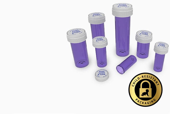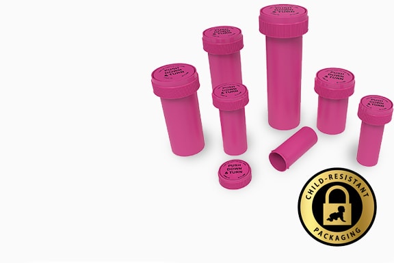 Our Reversible Cap Vials are the perfect solution for any business looking to stay compliant with child resistance safety laws in their state. Our Reversible Bottles feature a two-sided cap which allows users to screw it on from both sides, just simply push down and turn to open the vial and release its contents. Their odor proof design keeps unwanted odors from lingering, while keeping the contents fresh and preserved on the inside. Reversible Vials from 420 Stock are the perfect choice for packaging anything from flower to edibles. Our vials not only meet state standards, but exceed the expectations of the ASTM and CSPC. Shop Reversible Cap Vials from 420 Stock today!